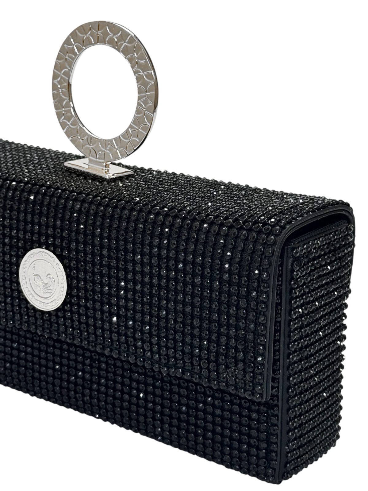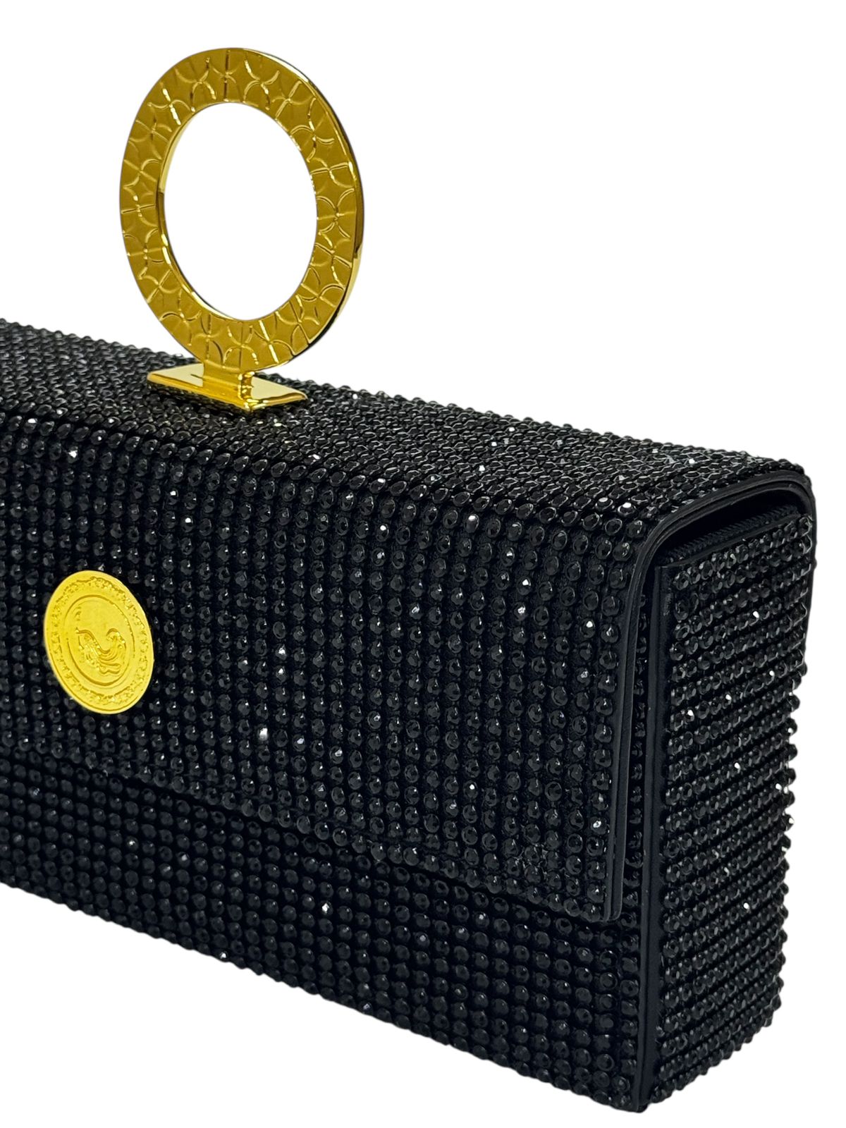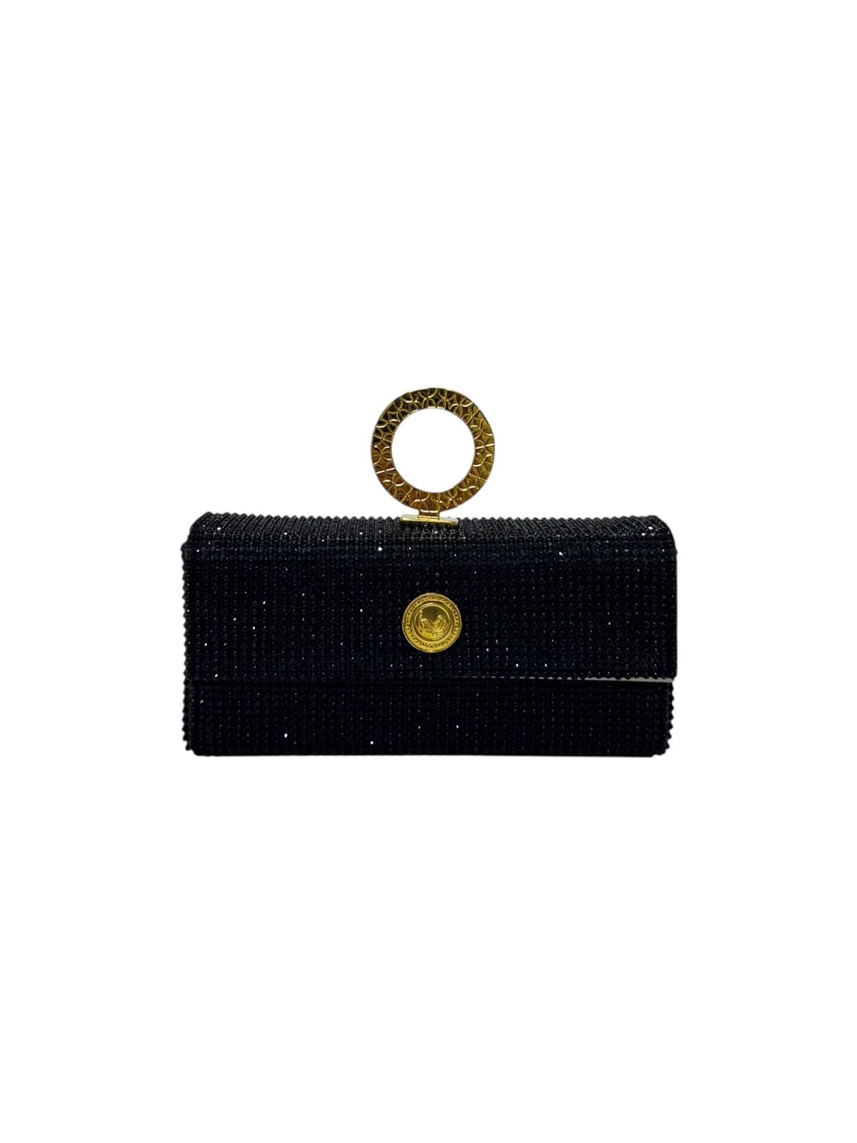 The new Shakati rectangular box clutch is made of thousands of rhinestones and padded with laminated genuine leather.