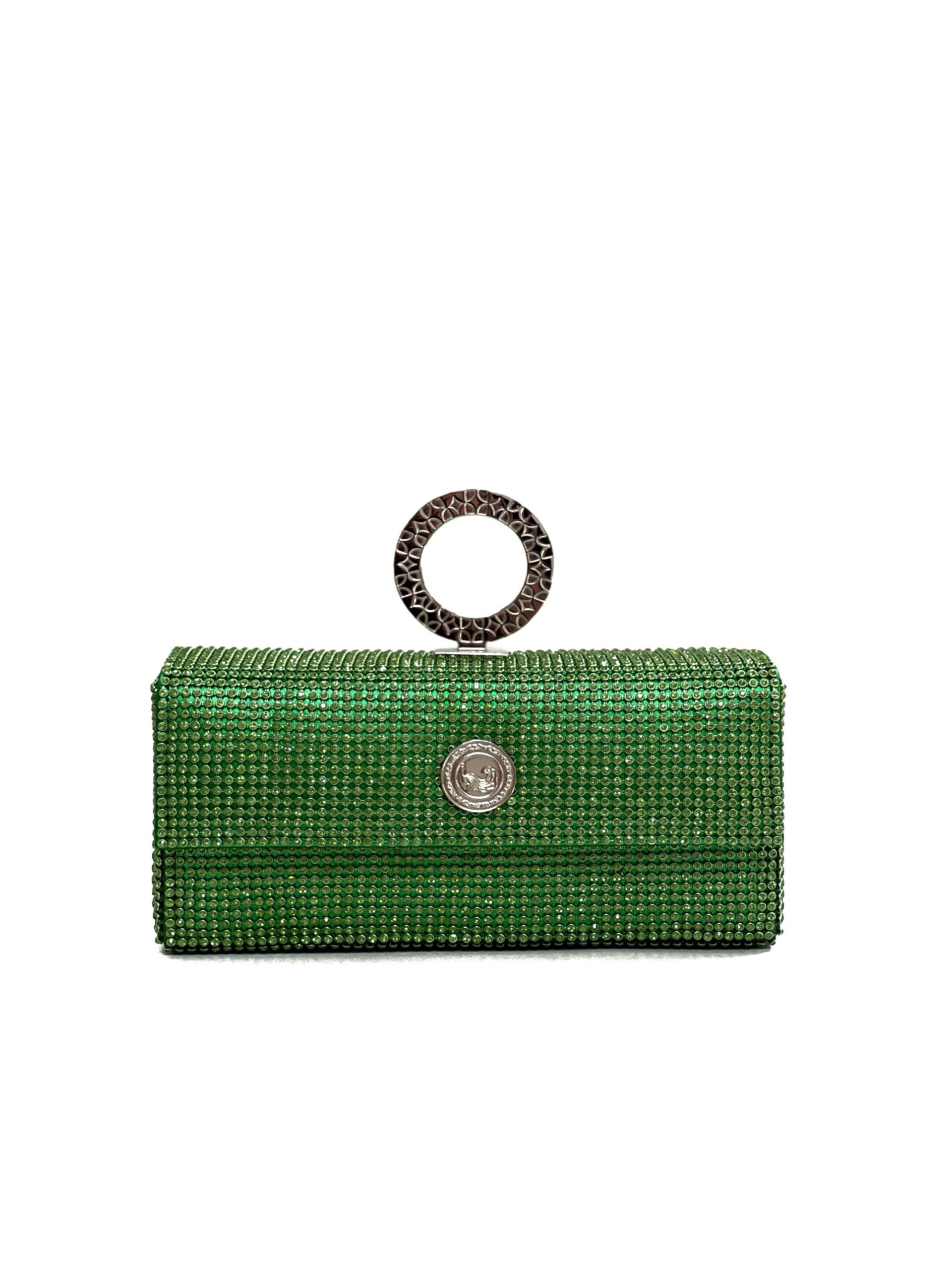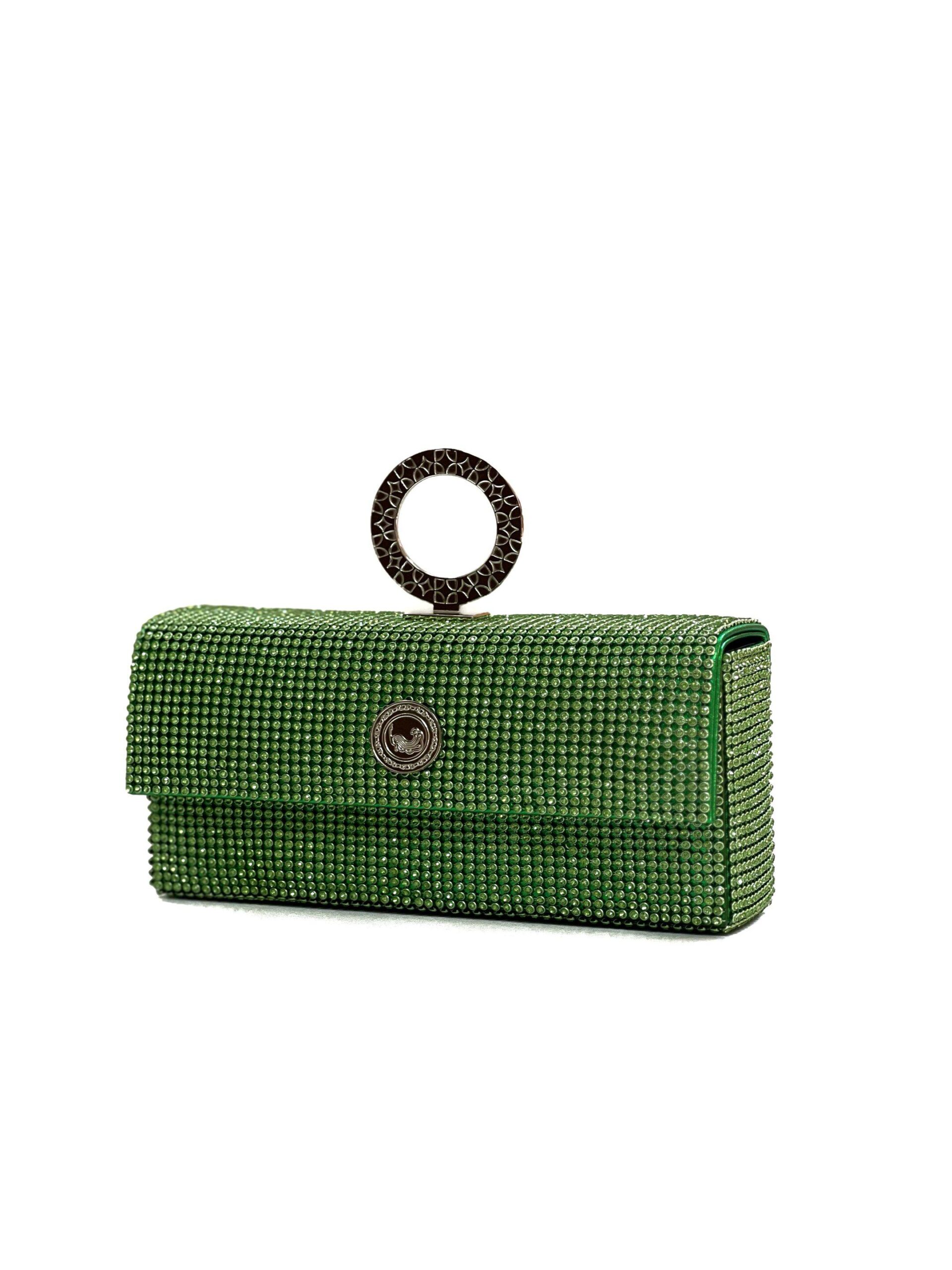 The new Shakati rectangular box clutch is made of thousands of rhinestones and padded with laminated genuine leather.